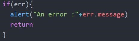 alert("An error :"+err.message)
