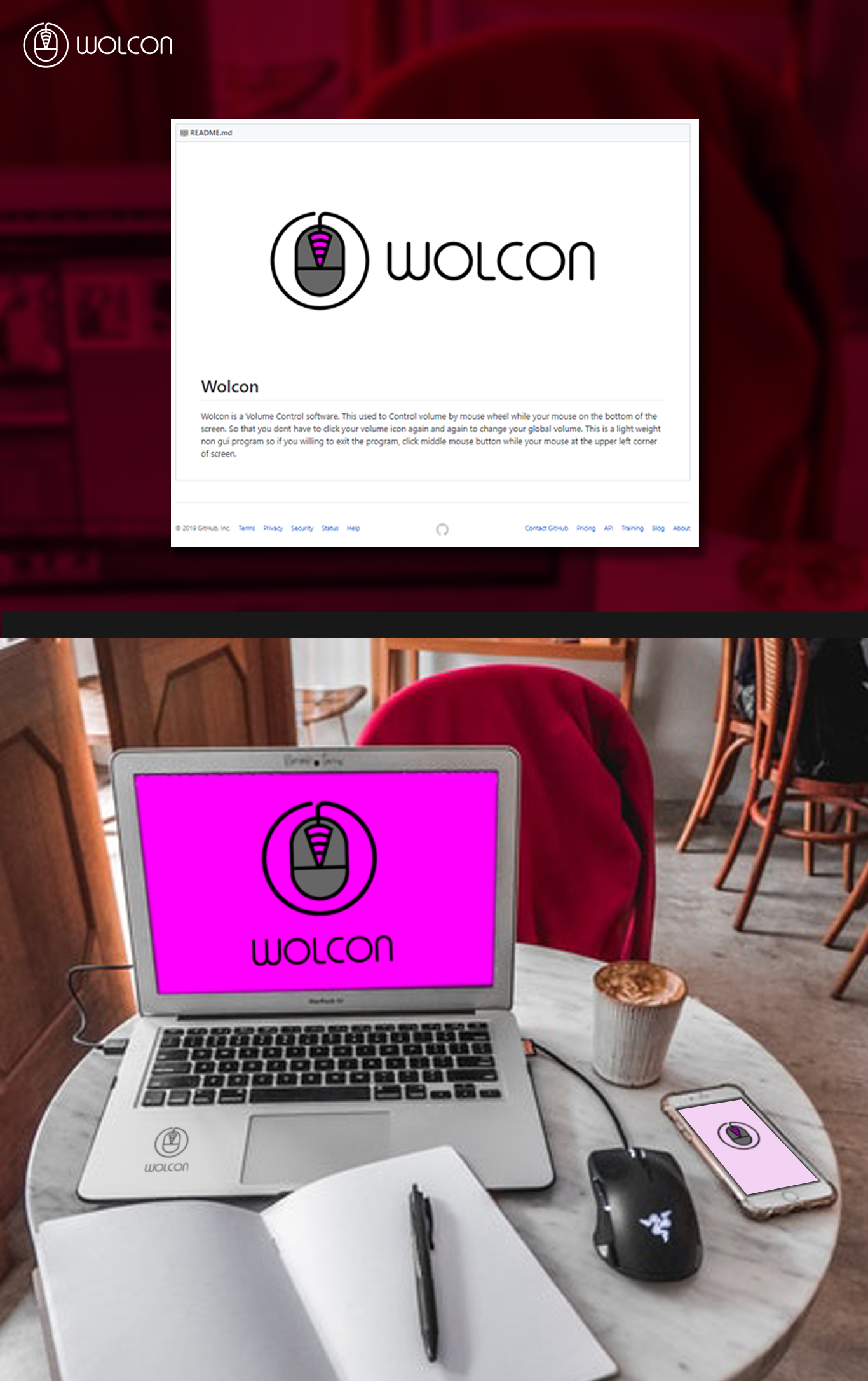 - This is my Logo contribution to "WOLCON" which is a Volume Control software. This program is used to Control volume by mouse wheel while your mouse is on the bottom of the screen so that you don't have to click your volume icon again and again to change your global volume. This is a light weight non Gui program, so if you willing to exit the program, click middle mouse button while your mouse at the upper left corner of screen.