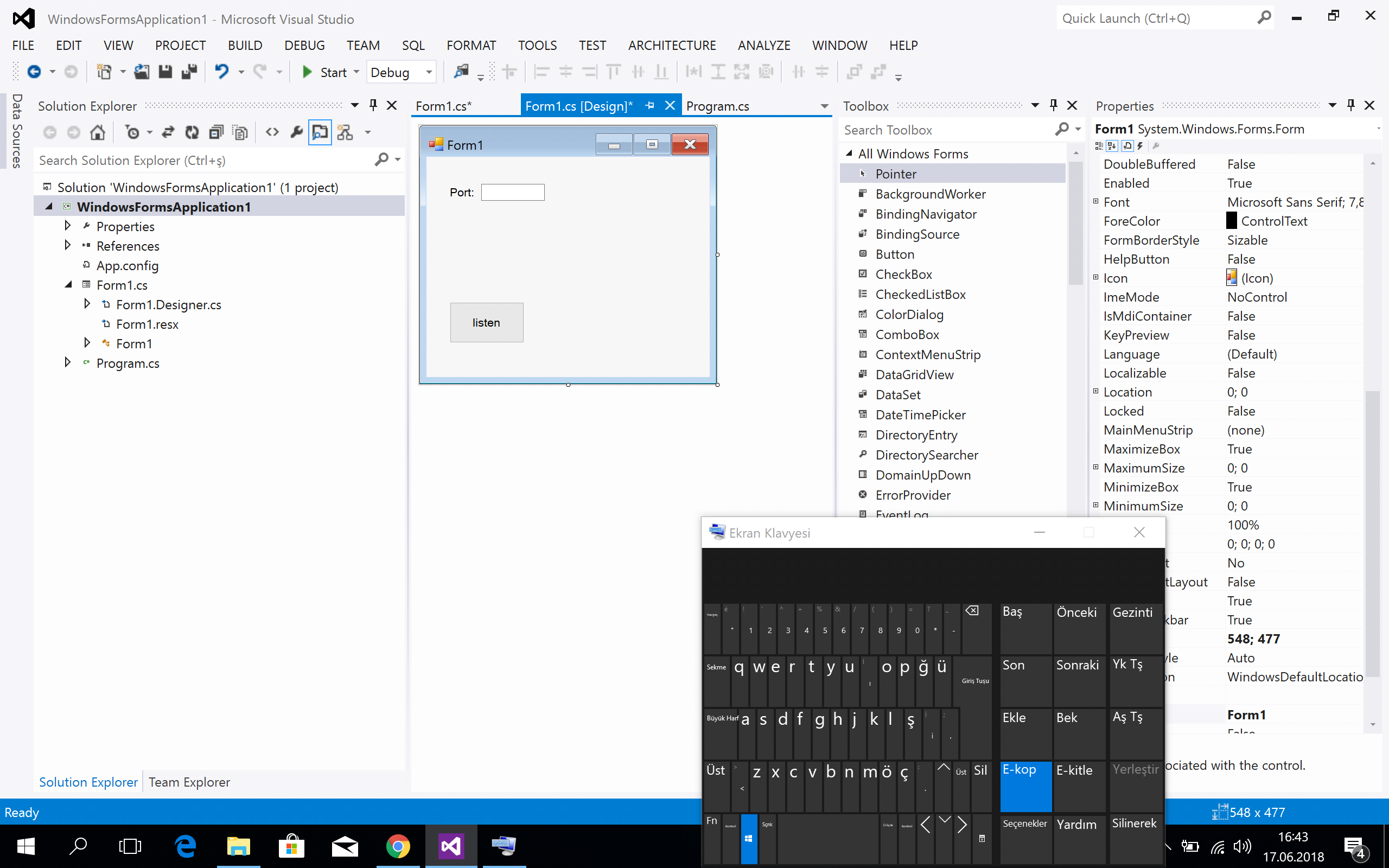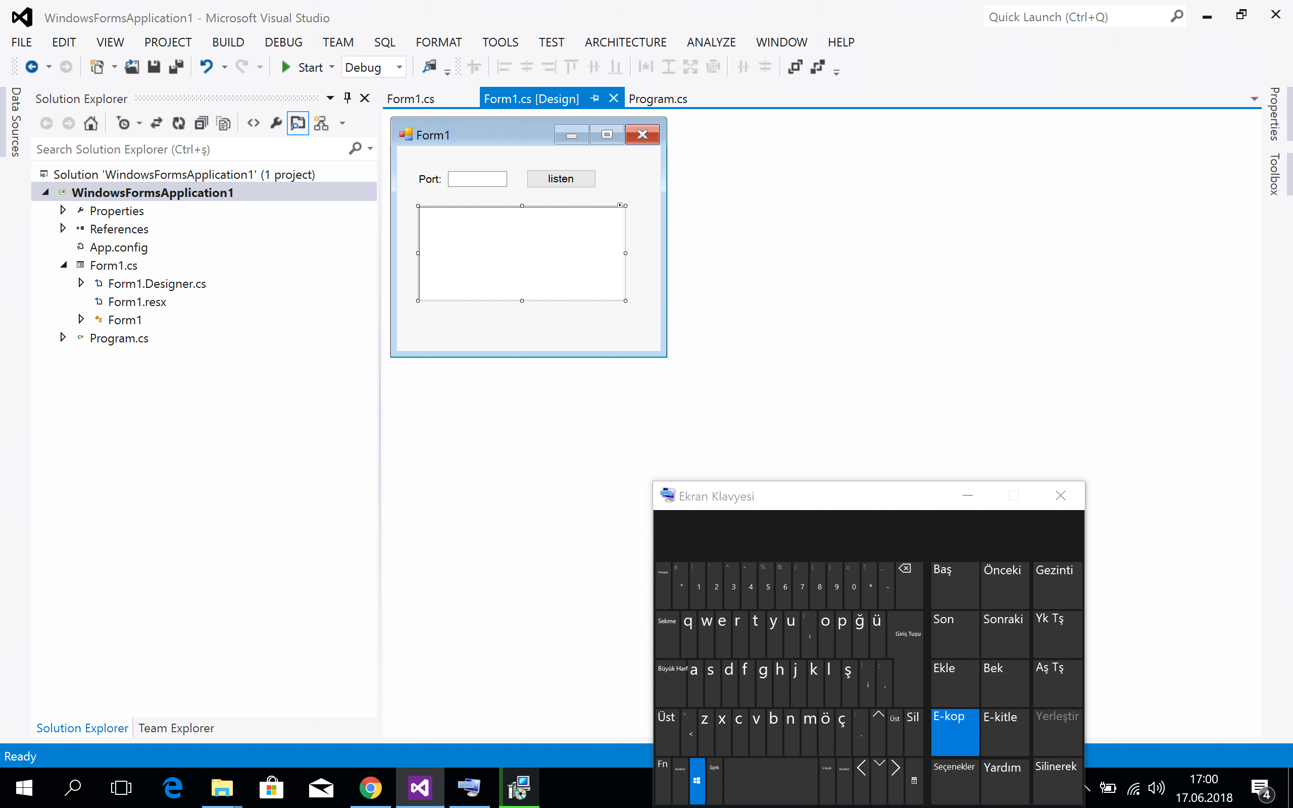 This is the button whose text is listen.We need to broadcast and accept connection in the port which server decide , it can be anything in general use 8080 but it depends on what ever server want or your decissions.I made thread for asynchronous action for avoiding crash on multiple part working.For example if we need to make two loop in same time we need to use thread if not program will crash.We take port number on textbox which take string and we need to parse it integger.In this case we need to use try catch method for avoiding carshes , it can be any problem for example connection fail , any exception.ipaddress.any means that any of ip adress which want to connect our server and serverport , in this method means make our broadcast for this port(YOUR DECİSSION) which we decided. RichTextBox1.AppendText is for making inform to user interface , richtextbox is an object wich we can write something but not user can do , text box is an object which user can write something in it.Listen equal true is aiming if there will be no problem until this line listening equal true because of understanding our server is listening or not.