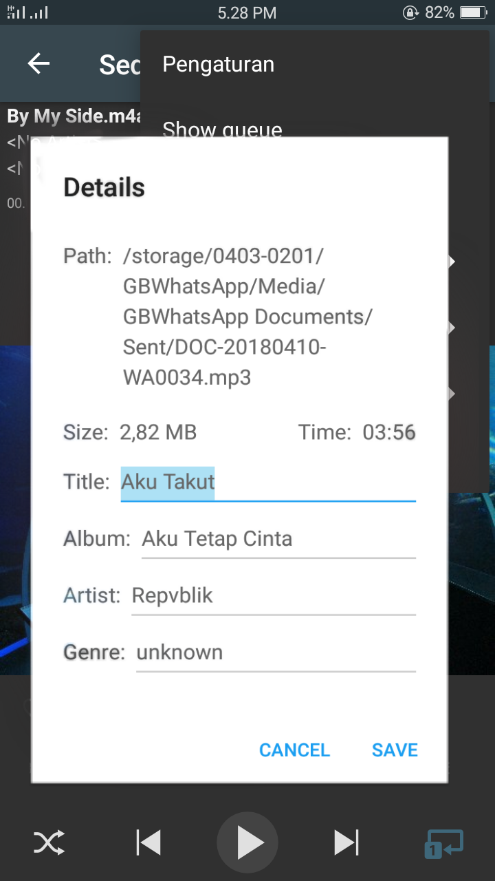 here I want to add my suggestion by adding a feature (Details) this feature serves to see the full name of the song and title and album, and we can also edit song titles and album names, and singers, this feature will make it easier for users to compose songs according to the name of the album that can be edited
