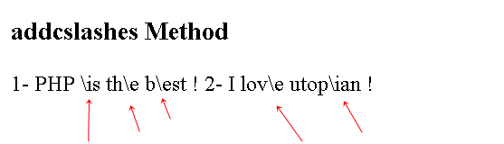 echo "<h3>addcslashes Method</h3>";