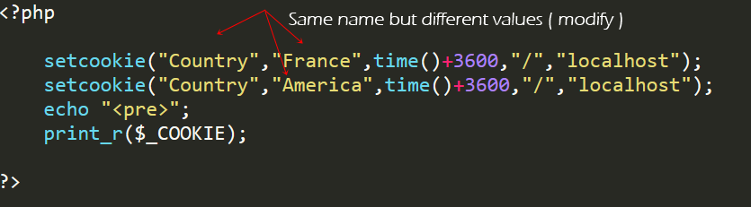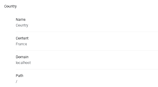 I have changed the value of the country to " Amercia " , but we have also the " Color" cookie when we print the array of cookies we get this result