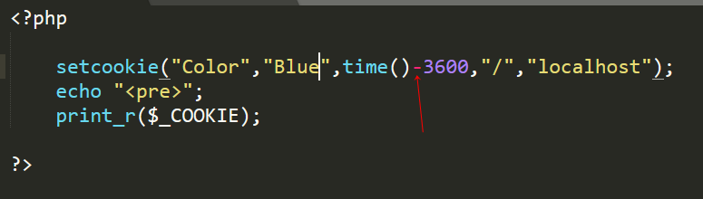 And to delete the cookie you have to change the expiration time, if you have to create a cookie to stay for a day for example, you have to add 86400 to the value returned by the time() function, but if you change the operation instead of the addition you put the subtraction, the time will be decreased and the cookie will be deleted, or you can remove it from the browser directly without changing the time.