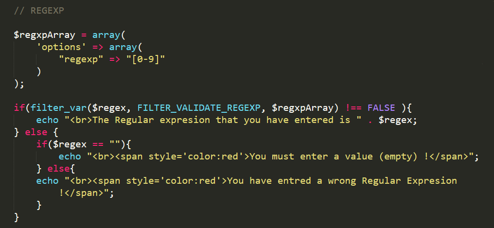 To filter that the user entered correctly a regular expression, we needs to use " FILTER_VALIDATE_REGEXP ".