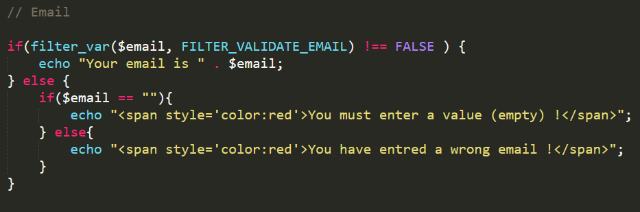 For that we have in PHP the " FILTER_VALIDATE_EMAIL " which will filter the email entered by the user, if the email contains the sign "@" and if has the form email@email.com or not and it will return a boolean value "true or false ".