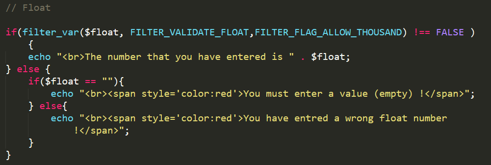 So the " FILTER_VALIDATE_FLOAT " validates a decimal number, and converts it to a decimal number if successful.