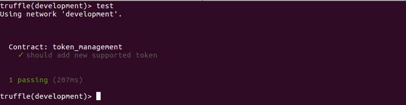 This test is to run test to check that adding,updating and removing tokens from contract works well. Before running each test we want to add a token as default and if you are not used to usage of asyn/await yet, you might want to read up on that.