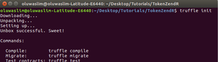 By now i assume you must have installed all requirements, so start Ganache then navigate to your working directory and create a folder, name it TokenZendR. Navigate to the TokenZendR directory from your terminal and run command truffle init, you should now be presented with an output similar to this.