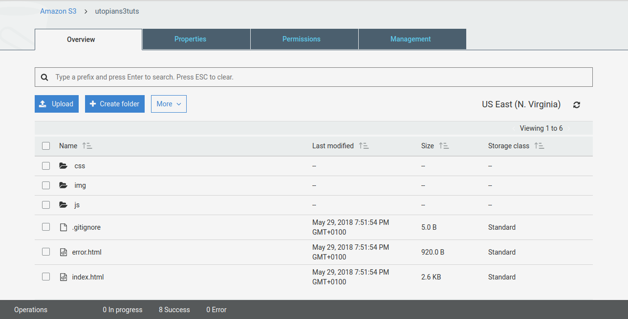 On AWS console you will see your newly created bucket with your files successfully uploaded.