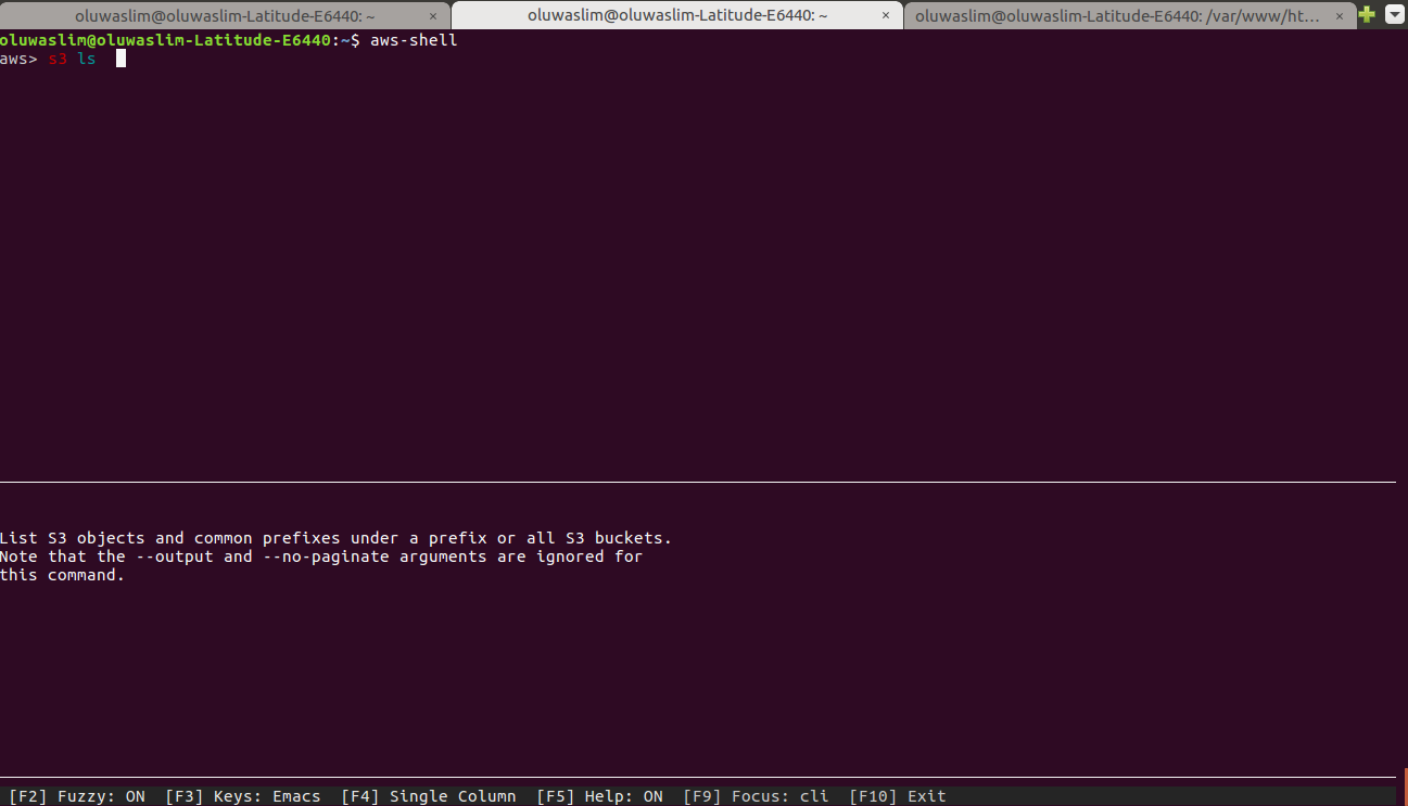 The aws-shell is an interactive shell, a close look at the above image you would see some options definition. The shell provides with feature such as autocompletion and tip about a command.