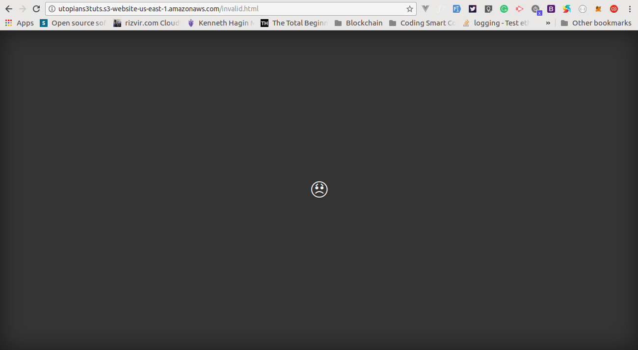 If you try to access an object that doesn't exist on the bucket, in my case i was trying to load invalid.html file that doesn't exist (see url tab in image) you should see theerror.html page load up which we've configured earlier from our previous command to behave like that. In some cases, i just use index.html for both index document and error page so visitors are redirected to my index page if they hit a 4XX (400, 404, etc...) server error.