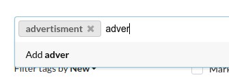 And also, the search bar doesn't allow for duplicate tags. If you have already selected one 'advertisement' tag and try to input another exact 'advertisement' tag, it doesn't allow.