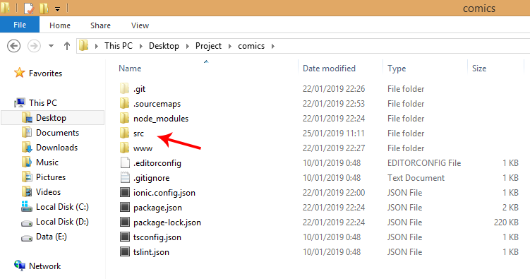 Now copy paste the "src" file to your comics project directory. For test it writes this code :
