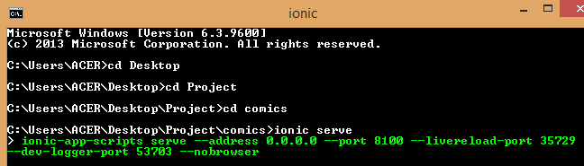 ionic serve