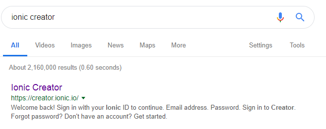 • Why would a user need to do a google search to find ionic creator? why not give them the direct link?