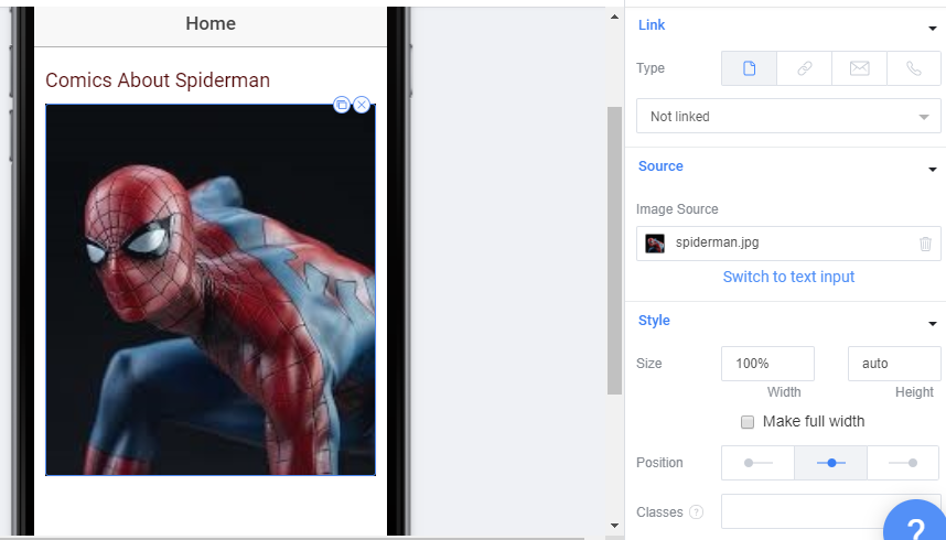 8. After that theming your Image component with upload our image because i use Source Image Type. Then set the size & position of our image. My result now.