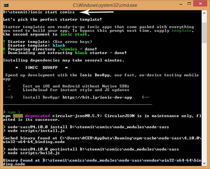 15. After that extract it. Now we must create a blank project after that copy paste the file "src" (the result of zip project from ionic creator after we extract it). Ok now open your command prompt (CMD), and type this code :