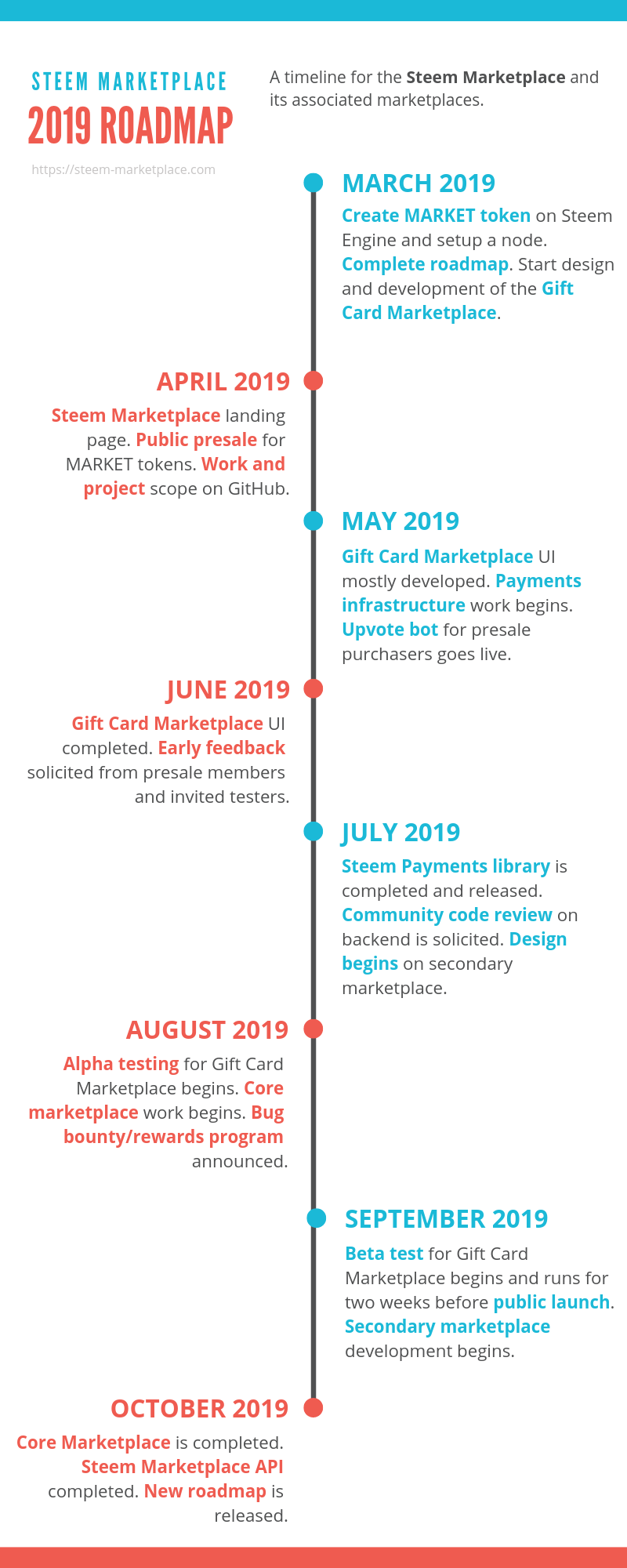 As March draws to a close, we've already knocked off these items on the list. The MARKET token has been created and available on the Steem Engine dex. The roadmap (this post and above image) has been created and released. And we have much very started work on the Gift Card Marketplace.