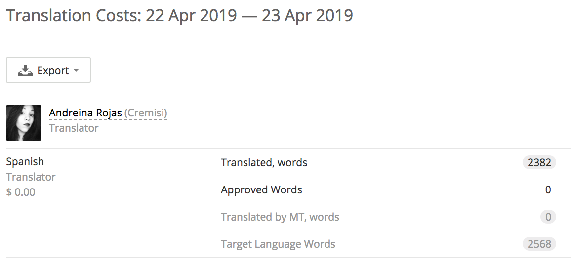 This counter includes non-translatable words, so it is necessary to work on more content to extract an average of 1000 translatable words.