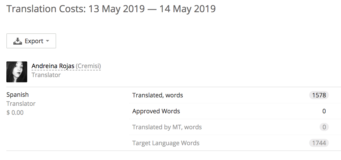 This counter includes non-translatable words, so it is necessary to work on more content to extract an average of 1000 translatable words.