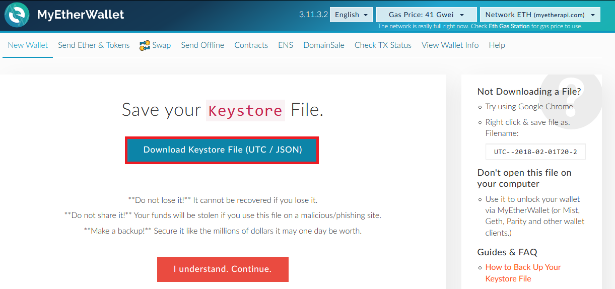 Nos da la opción de que guardamos nuestra "keystore" con la cual despues vamos a loguear.