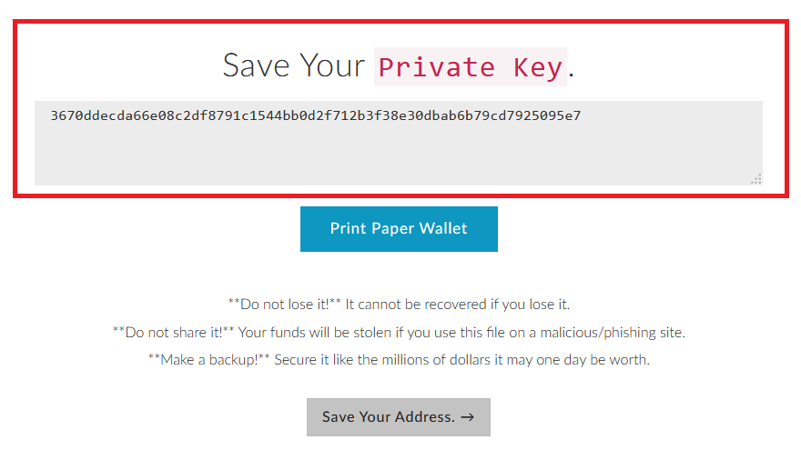 Una vez que le dimos a continuar, nos va a dar una llave privada cual hay que guardarla con mucha seguridad.