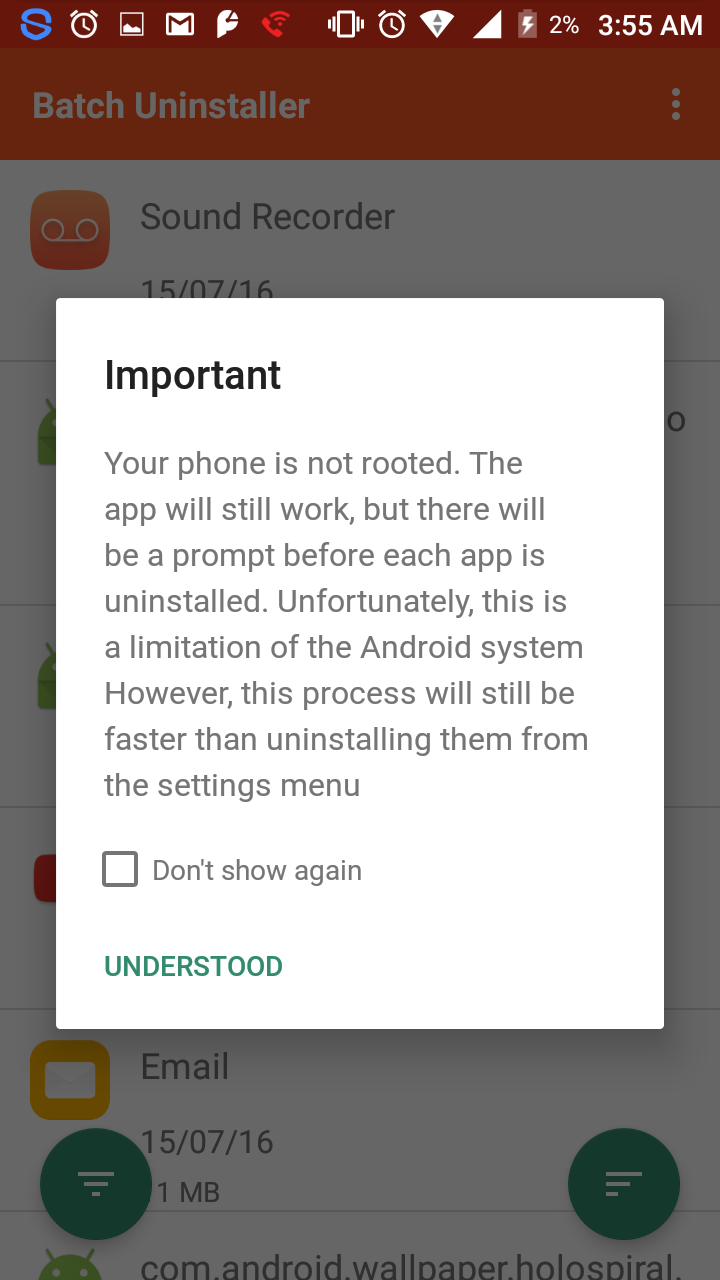 - Launch the app, and if your device is rooted, grant the root permission (for better user experience), otherwise click on the 'understood' option to continue.