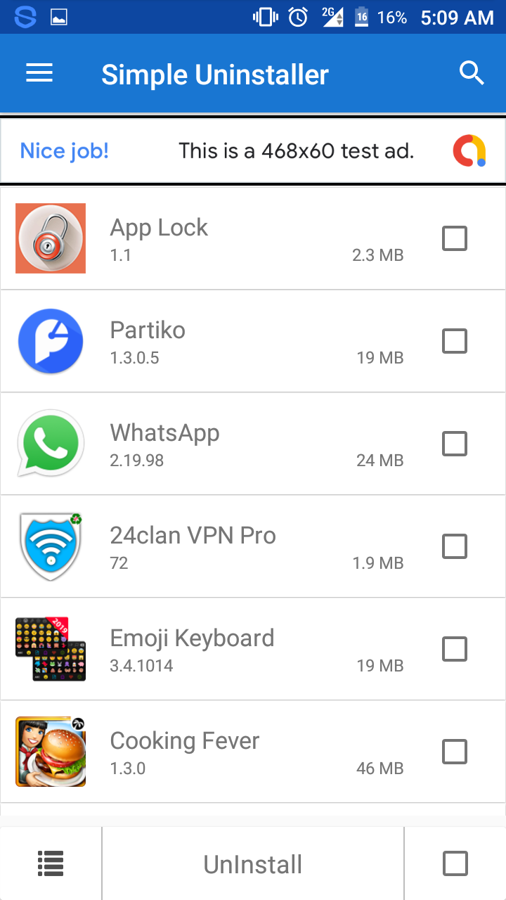 Next, a list of my applications was displayed on the home screen of the batch uninstaller app.