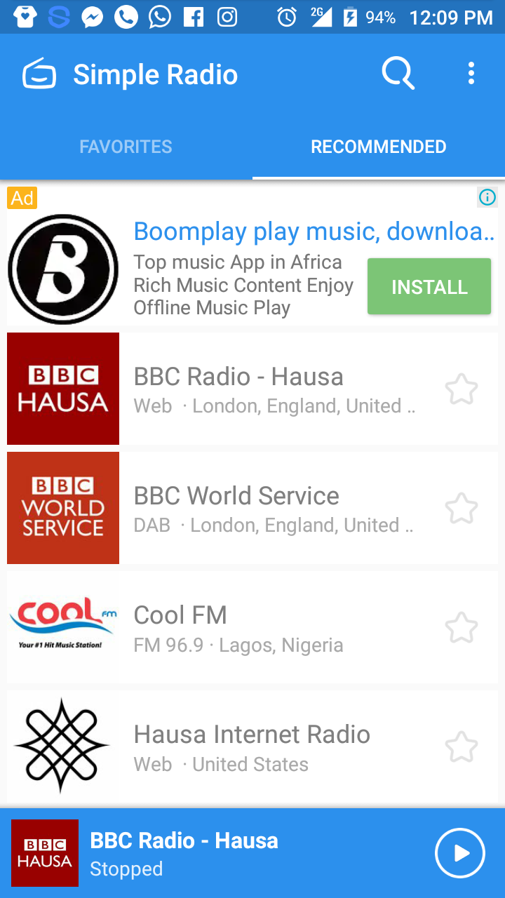 The first station I added to favorites is Radio 9ja of Nigeria.
