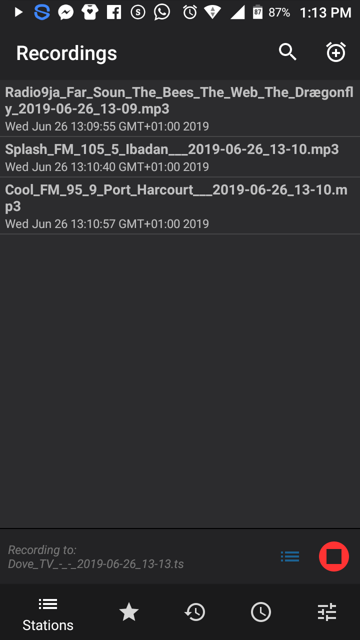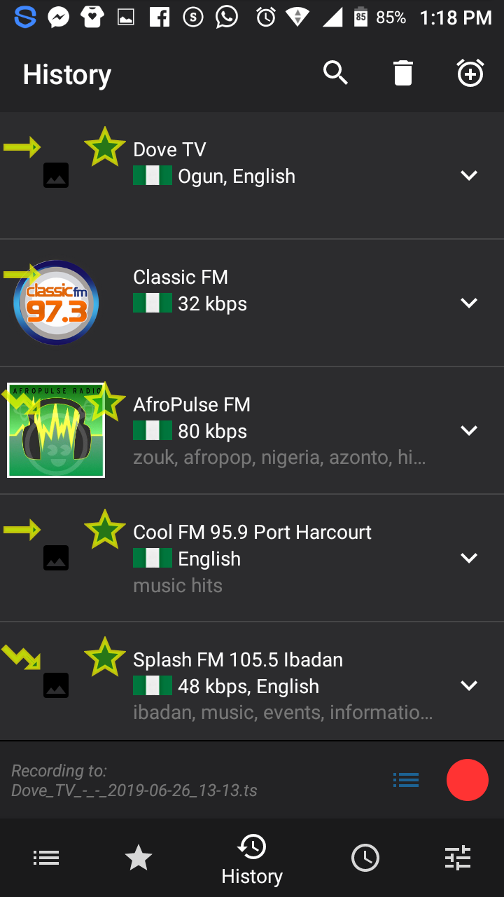 - History: This is the third feature on the app. This history feature shows you the list of all the radio stations you have played according to when last it was played.