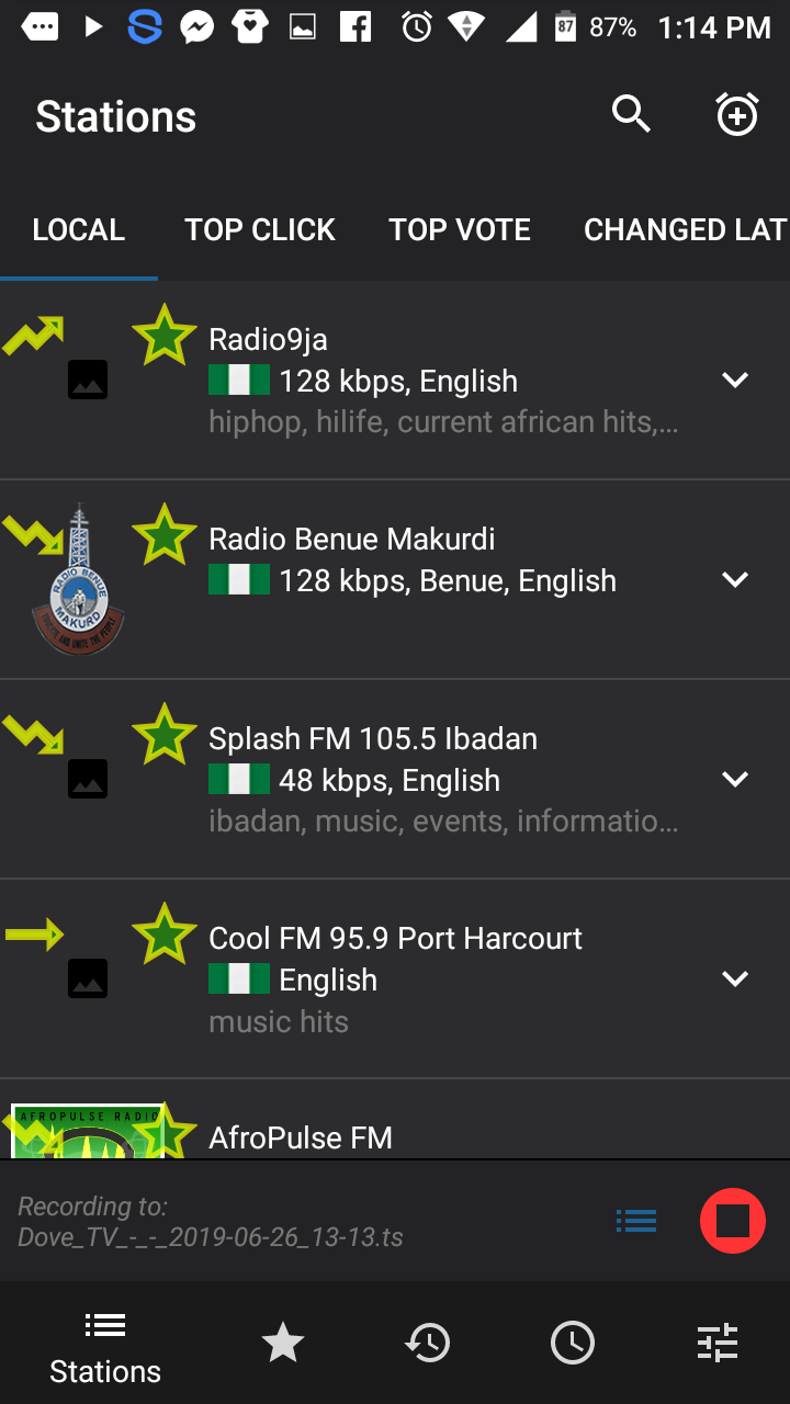 - Station: This feature contains radio stations in this application. In the station feature firstly we have the ‘Local’ stations. The local stations can best be defined as the radio stations around your country or within your country. Each of them listed has tags and can be shared using a stream URL.