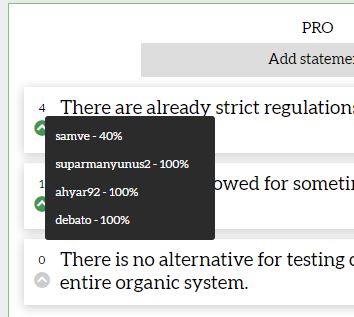• Showing users who upvoted Besides seeing the number of upvotes received, you can now see who upvoted the argument/comment when you hover over the value. It is a great way to increase the community feeling.