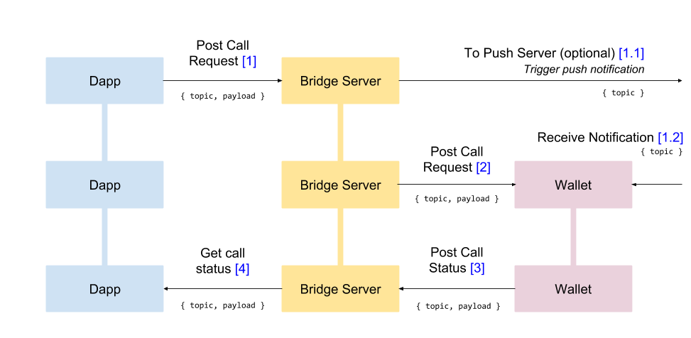 Once the connection/bridging between the two peers(wallet & dapp) gets established, the dapp can send RPC call request to be handled by the wallet which includes: read data, sign messages/transactions etc.