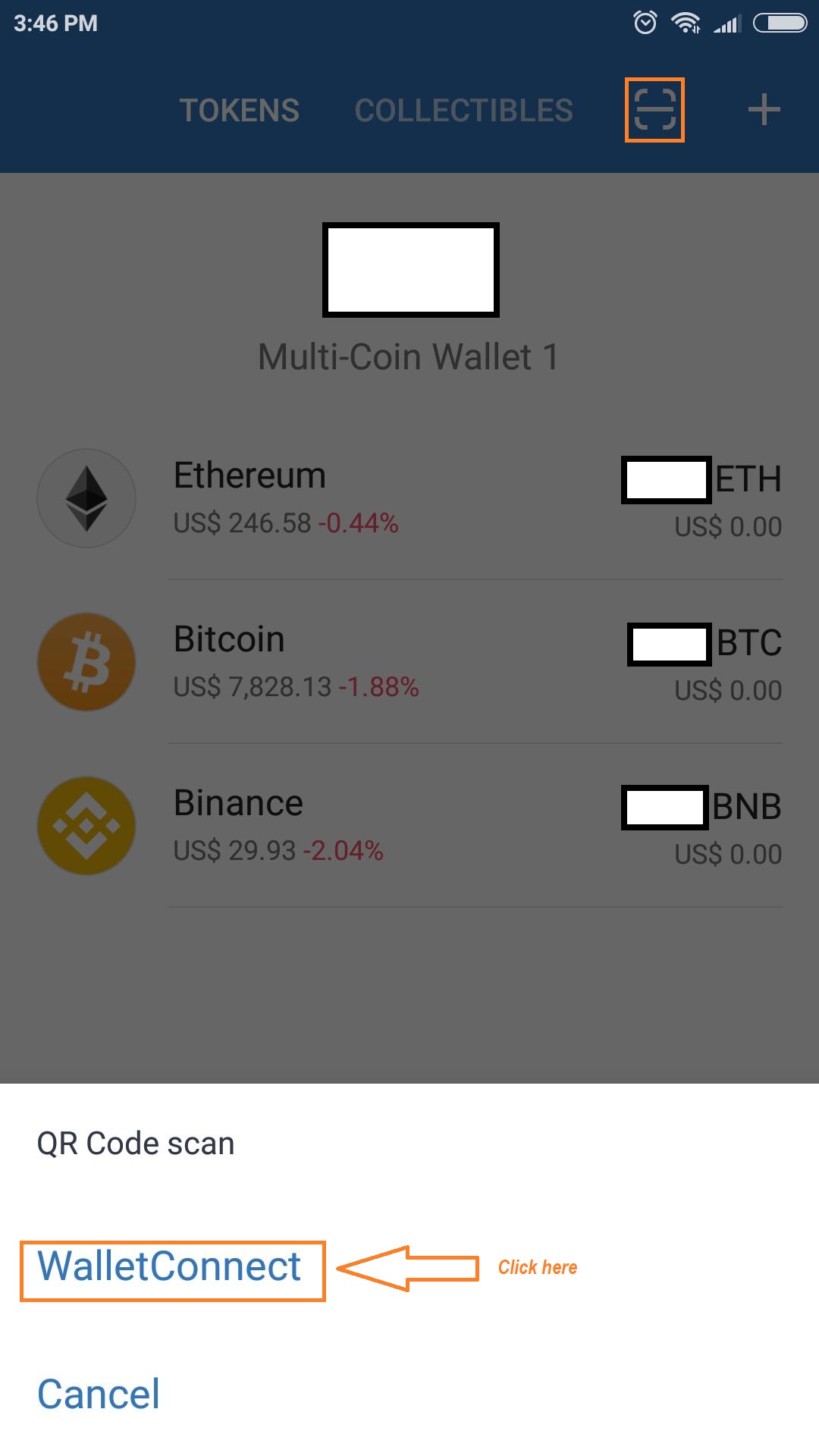 Before getting started you may require a virtual mobile wallet. In case you don't have, you can get it from Google Play Store. I have downloaded and installed (Trust Wallet)[https://play.google.com/store/apps/details?id=com.wallet.crypto.trustapp] (you can choose any other wallet too which supports walletconnect) to test the interface and make use of Walletconnect protocol. After you have your virtual mobile wallet in your phone, then go through the following steps:-