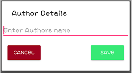 authors_nameand has a marginTop of 10dp -android:layout_marginTop="10dp"with the hint message - "Enter Authors name" - The CANCEL button is created with the id -