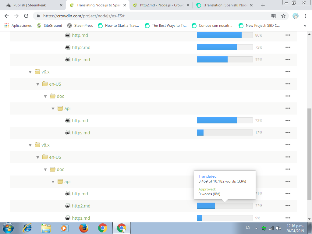 653,715 words have been translated so far in the Spanish folder of Node.js, which amounts to a total of 62% done in regards to the completion of the translation of this big project.