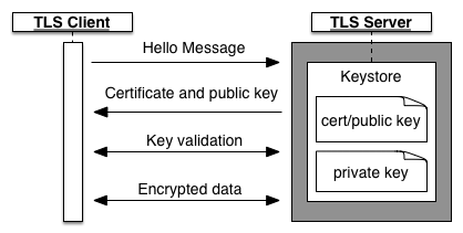 2: The server responds with a certificate, which contains its public key. This certificate comes from the server's keystore, which also contains the server's private key. The private key is never sent to the client.