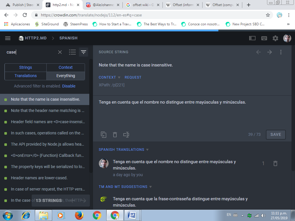 Besides collaborating as a translator for Open Source Projects on Crowdin I also work as a Freelance Translator for a law firm in the US, I've been working for that company for one year and five months, translating sworn statements and legal documents from English to Spanish and viceversa.