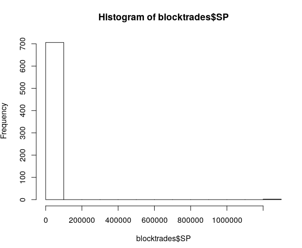- The boxplot is another way of representing the distribution of the SP, again lots of small delegations and some very big ones.