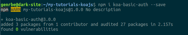• Add koa-basic-auth package ‘npm i koa-basic-auth --save’