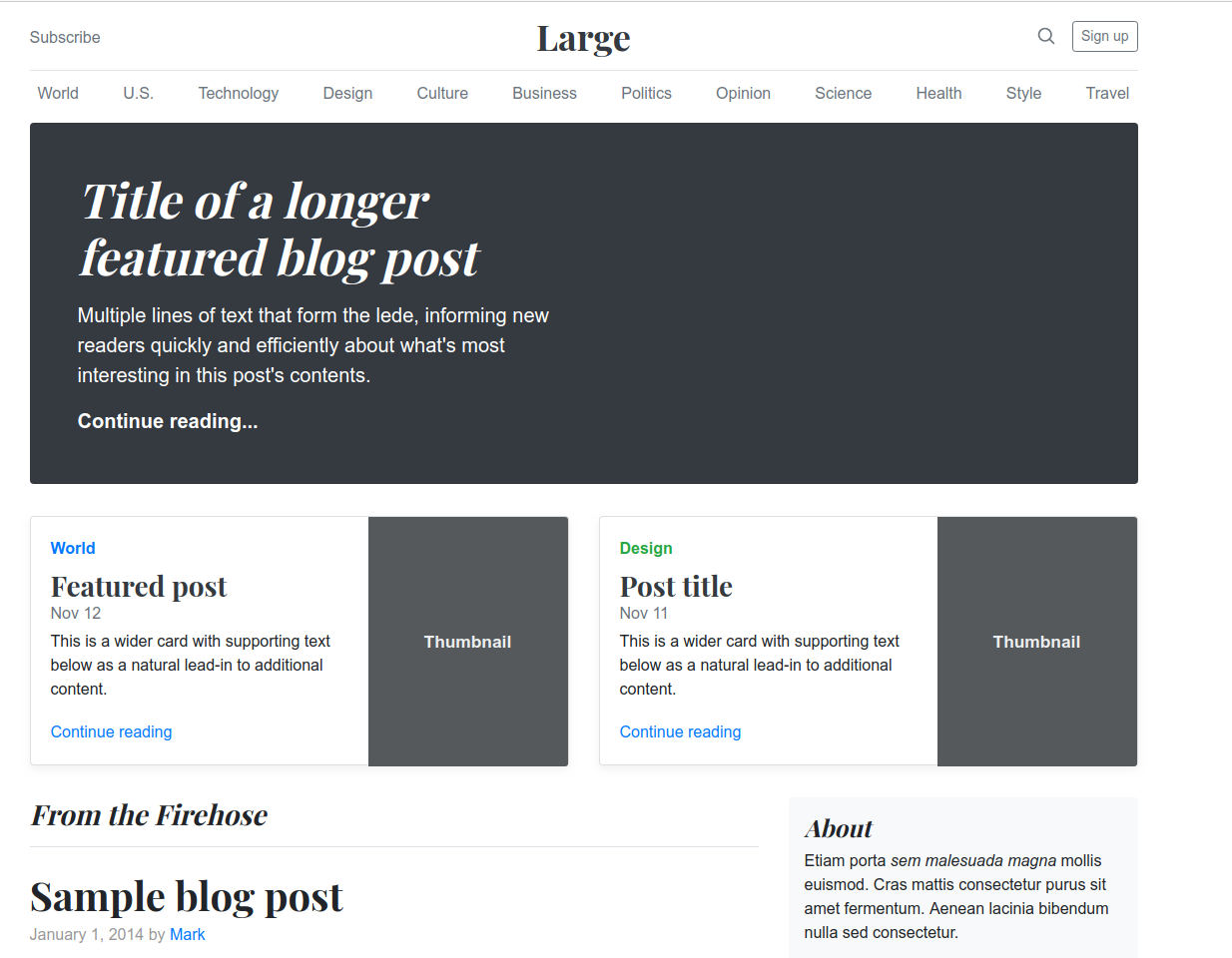 • Get sample example from https://getbootstrap.com/docs/4.1/examples/blog/