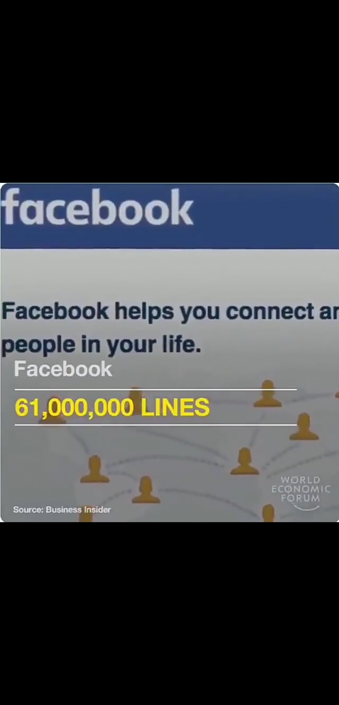 Next on this list is Facebook. Good old Facebook, not surprising that Facebook uses this much line of code to operate. I wonder how many exploits u can find in the codes 😏.
