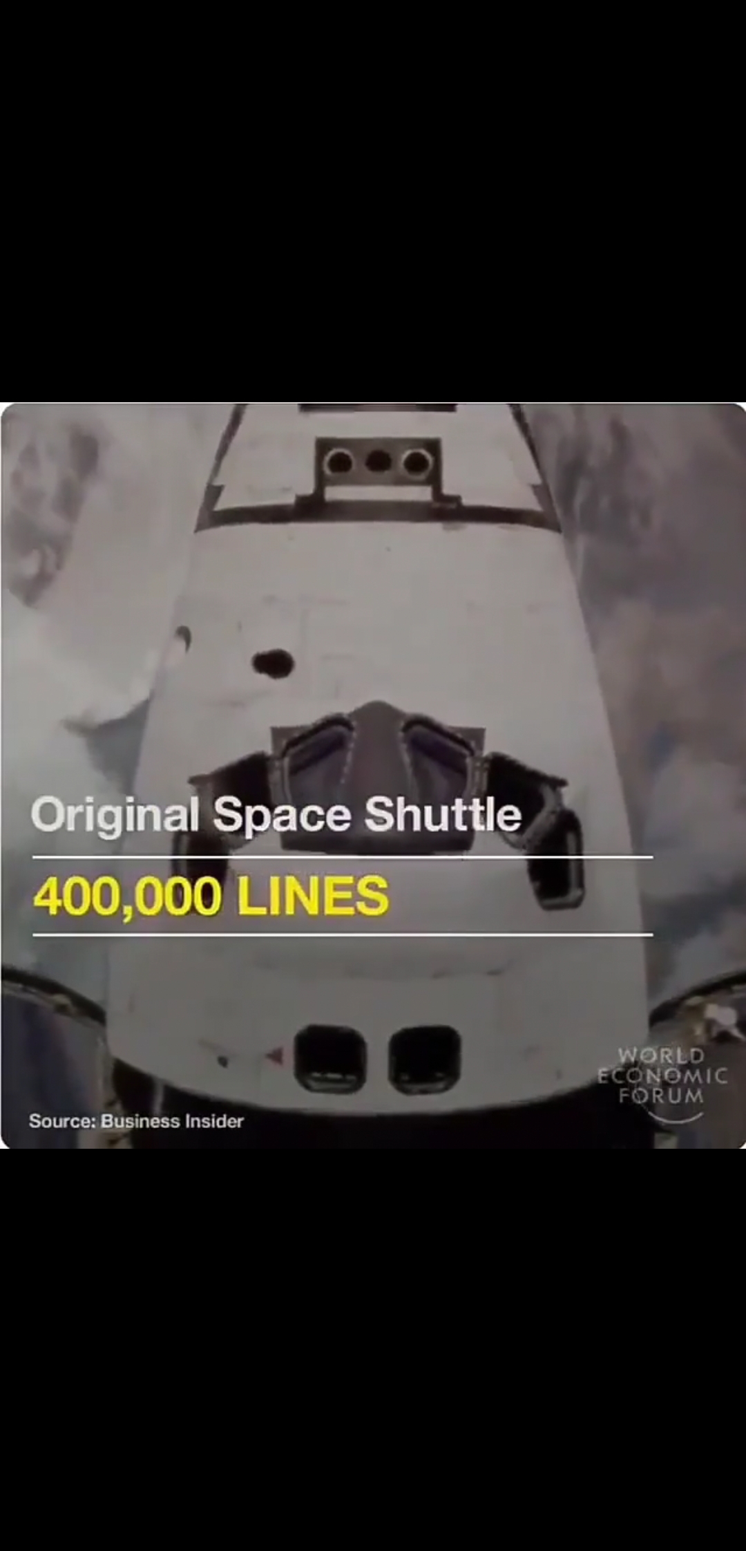 The original space shuttle has 400000 lines of code. And this was years ago, how far have we come in technological advancement.
