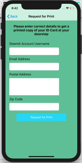 Steemit-IDCard is an open source revolutionary iOS app made for Steemit Users. This app will creates you your own Steem Identity Card from your Steemit account details. The app is currently under development process and i continuously adding features in it. The latest feature i added in app is now users can order for printed version of their ID Card at their doorstep. I talked with a printing agency and they are ready to send printed ID Cards to user's doorstep. I am not taking any fees from users for providing them their printed ID Cards. Another feature i added in app is now users can update ID Card image with any image from their device camera or device photo library.