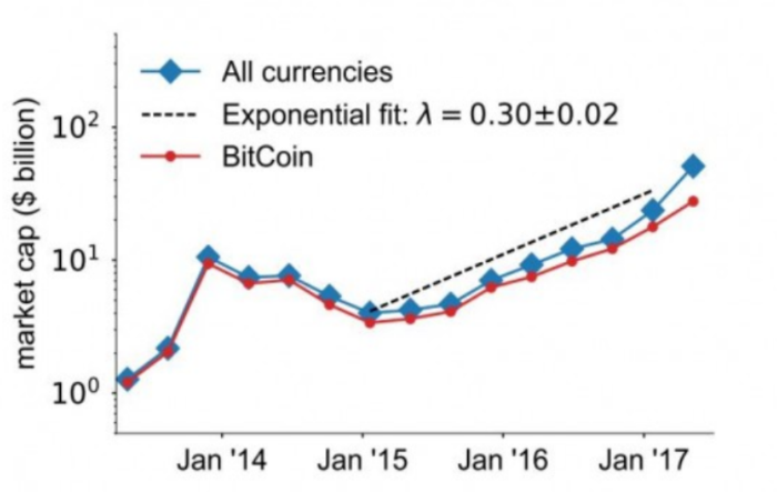 This graph is an example of the rise in market currencies, such as bitcoin, in the last few years.