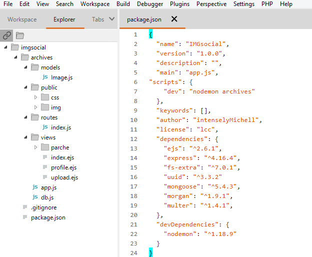 That said we will create our file pakage.json and our main file where we will make the initializations of our modules and services as our own web server among others, and we will call it app.js, we will explain it part by part and then start working on our views with what we need.