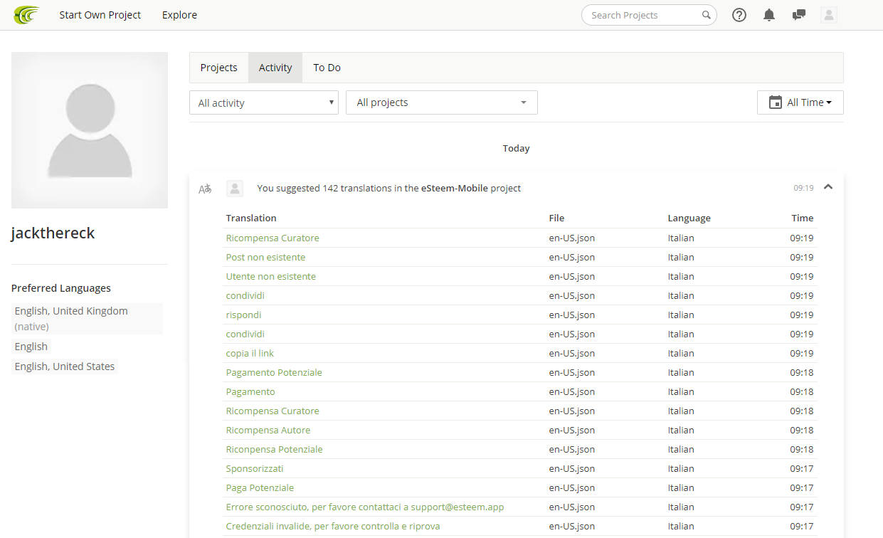 ITALIAN eSteem-Mobile Translation