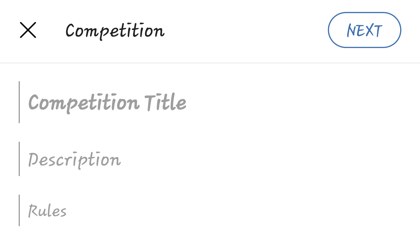 When you click on the "create a contest" option, it leads to the text editor where you are prompted to write the competition title, description and rules. The title needs to be a catchy one, yet not too fancy. For example, the title "Finish this story" competition usually hosted by the 1Ramp team is a simple writing contest. From the title, you already know that there is a story that needs to be completed.