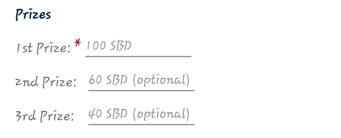 As for prizes, it's compulsory you set a prize for the first position. You may also set for second and third positions, or decide to give out consolation prizes. It's usually best to give out what wouldn't hurt your wallet. It is not reasonable to set unrealistic prizes.