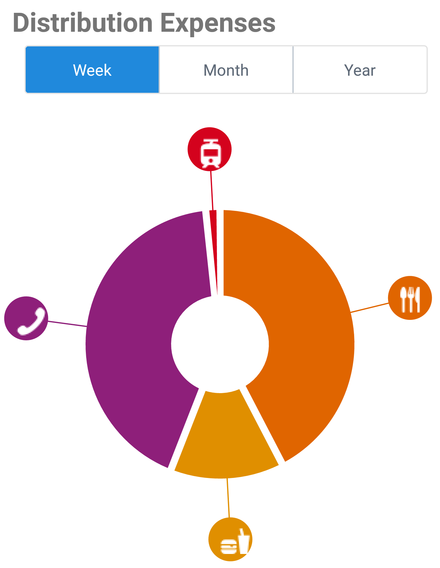 The Weekly/Monthly/Yearly Distribution Expenses: There are three options on this tab. It is used to show the expenses for the week/month/year on a pie chart.